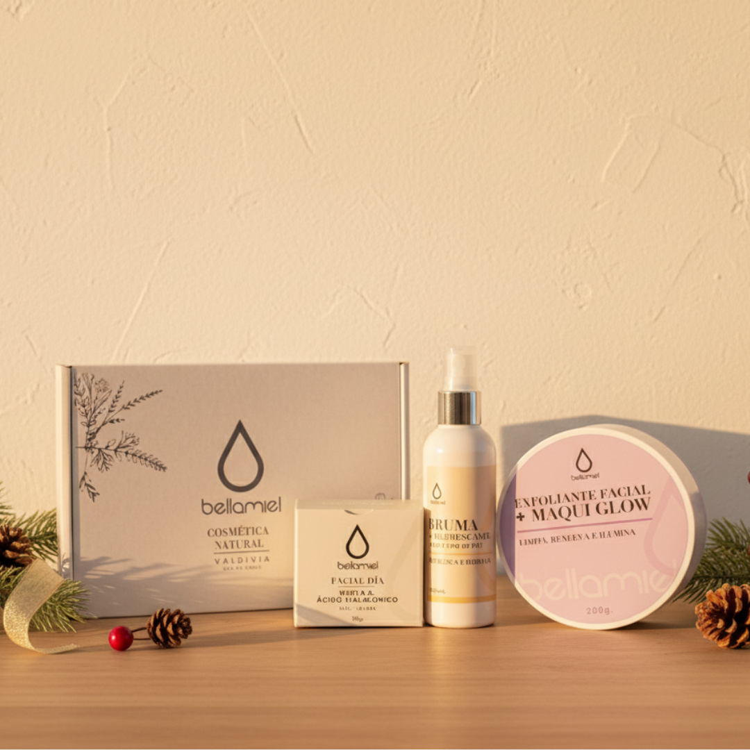 Incluye tres esenciales naturales para renovar, iluminar y dejar la piel radiante desde el primer uso — ideal para regalar o para comenzar tu ritual glow esta Navidad.